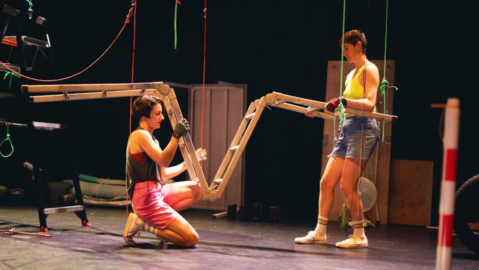 "Prachtige performance van Jacobien Elffers in dystopisch trommelwoud." Theaterkrant