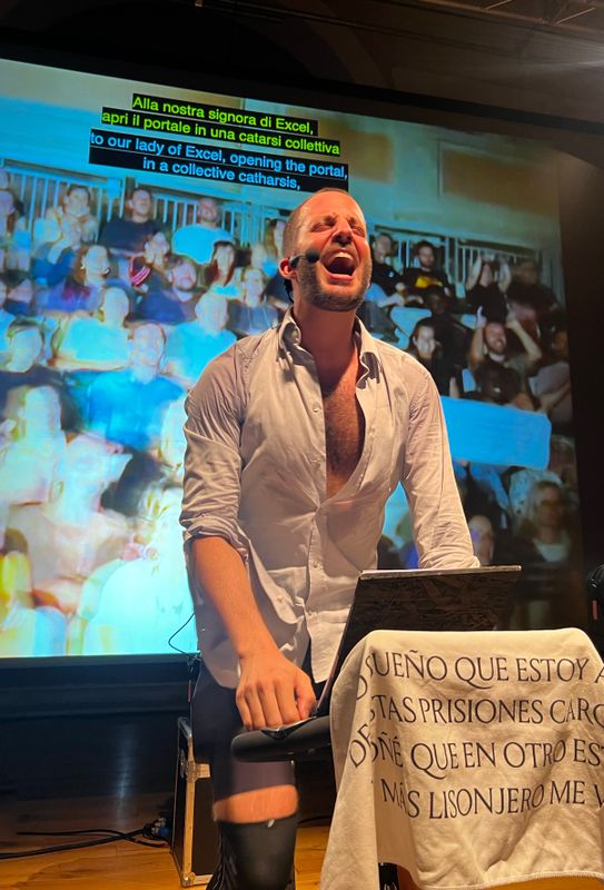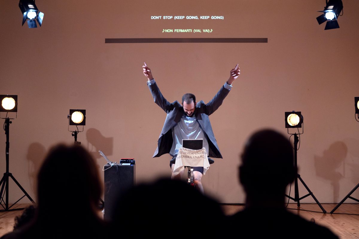 Sergi Casero Nieto (Barcelona, 1991) is a performance-maker and designer. His work is situated at the crossroads between the white cube of the gallery and the black box of the theatre. In that grey space, Casero attempts to dissect contemporary malaise from the stage, focusing on the subtle yet violent impacts that hegemonic narratives exert on our daily lives. His practice plays with the limits of representation, the body, and participation, challenging the power structures that shape our existence.
