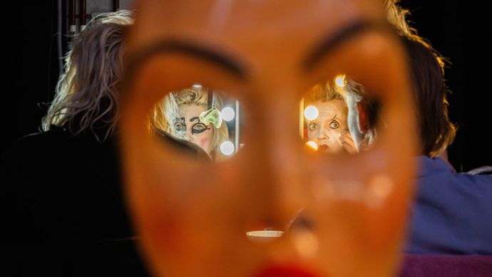 Een voorstelling waarin van alles misloopt, over een wereldtoneel waarop van alles misloopt, maar waar je niet van wegloopt: je blijft zoeken, zingen, tasten, salto’s draaien en hard onderuit gaan want all before death is life.