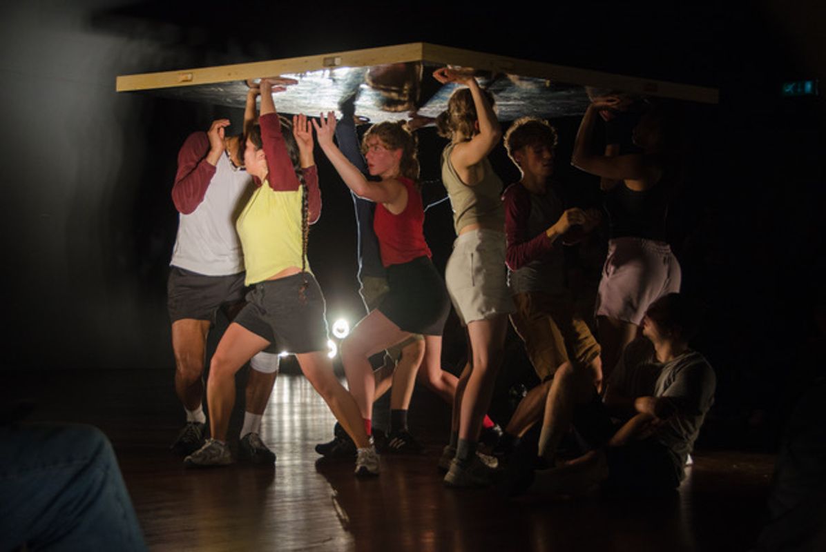 The world of performance collective ROTOR revolves around the repetition of physical actions. The question “What sets ROTOR in motion?” is always central. This question highlights not only the driving force and starting point of movement, but also the possibilities for deepening and transformation that resonate with the audience. What sets ROTOR in motion within the audience? Core elements include the body as a point of departure, the performers’ physical exhaustion, the audience’s physical involvement, variation within repetition, and the practice of meaning-making.