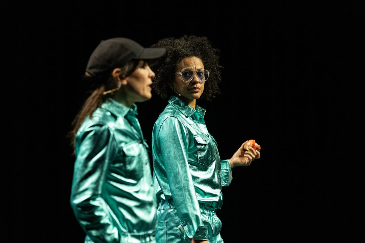 choreography and text Keren Levi in close collaboration with performers Esther Mugambi & Hillary Blake Firestone video Assi Weitz & Rob Gradisen music Tom Parkinson dramaturgy Igor Dobričić light and technique Martin Kaffarnik graphic design / collage Miritte Ben Ytzchak photography Rob Gradisen, Robine Junicke production stichting NeverLike co-production FFT Düsseldorf, Theater im Pumpenhaus Münster, SPRING festival Utrecht funding support AFK, FPK, Elise Mathilde