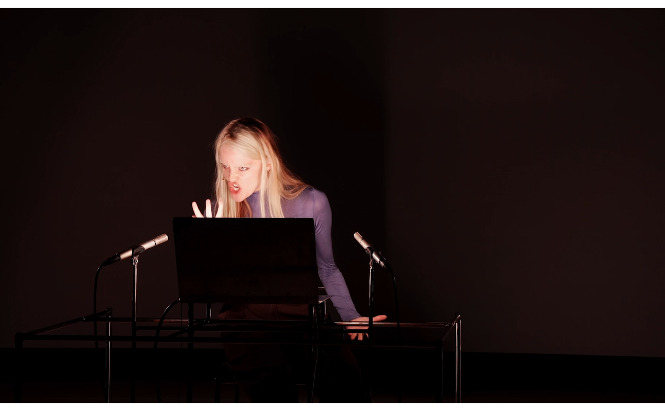 As a maker Sabine relies on the intimacy of the sung voice, the lyricism of language and stark stage images to create peculiar and immersive worlds. She is interested in the subjective, interior, and poetic forms of reality, and uses fiction to investigate the humor and meaning in themes of eeriness, grief, the existential, and the absurd. Her pieces are often concerned with and propelled by various forms of excess, driving semantics to the point of overkill and hilarity. She likes characters who cannot help but want things they cannot have.