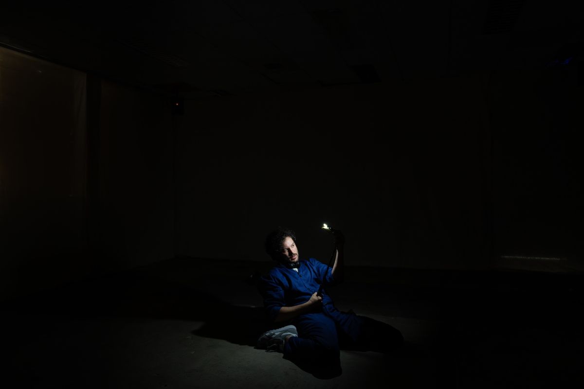 In his works, Ari Teperberg constructs performative mechanisms that take place between the sensory, cognitive and emotional systems of the audience and the performer(s). Fascinated with distance, voice and the eternal struggle to communicate, his research-driven works invite for a world of sound, movement, action and object.