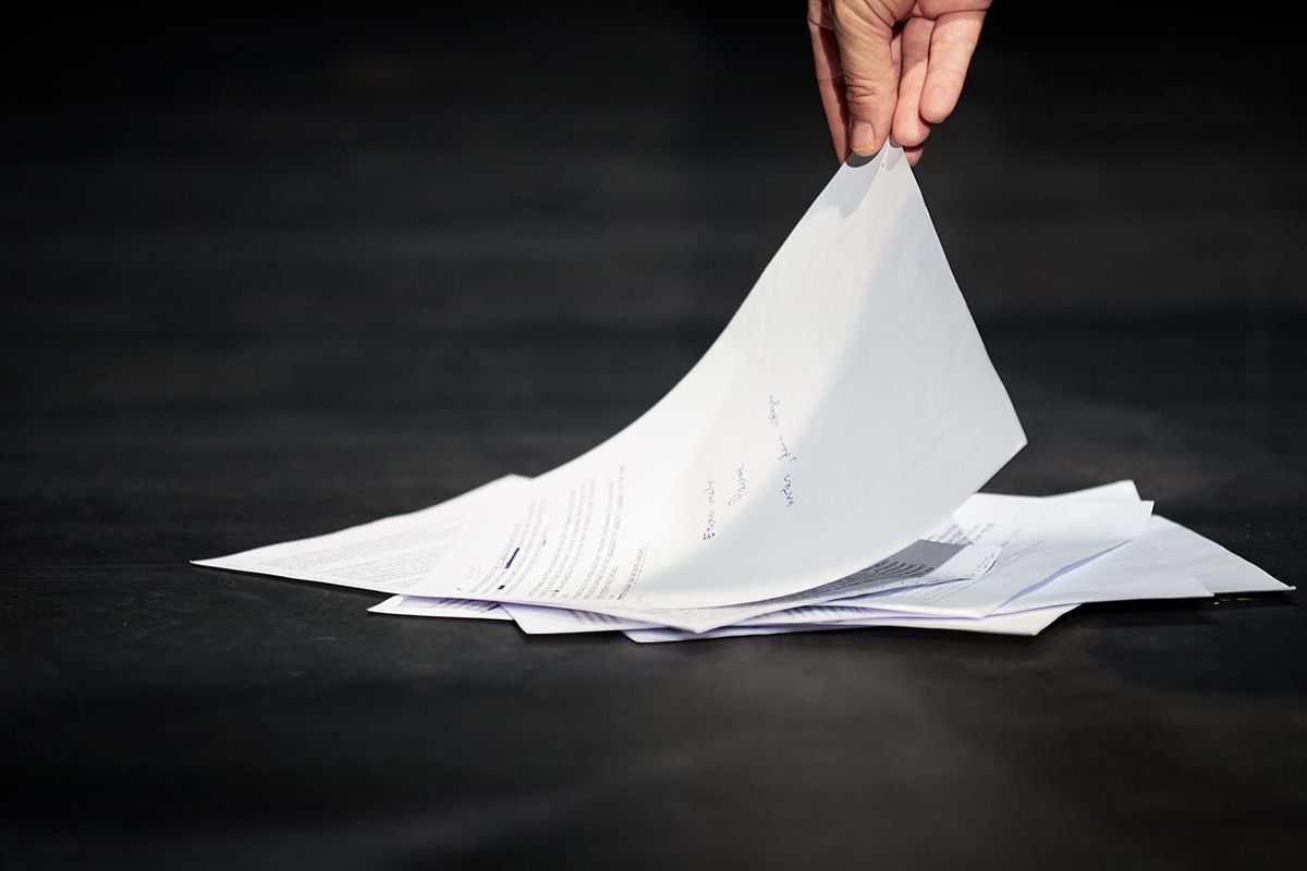 “It is very quiet in the theatre. (...) There is no "good evening" and "goodbye", but only a sudden coming and going. And in between, the pages of life are spread out, read out, tasted, thought through.” nachtkritik.de