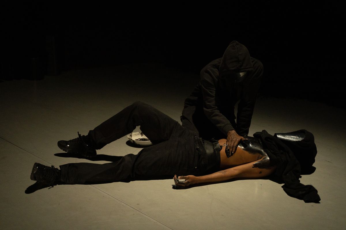 concept and choreography Cherish Menzo creation and performance Cherish Menzo and Camilo Mejía Cortés lighting design Niels Runderkamp musical composition Gagi Petrovic and Michael Nunes mastering Gagi Petrovic scenography Morgana Machado Marques vocal and delivery coaching BOИSU and Shari Kok-Sey-Tjong costume design JustTatty.com dramaturgy Renée Copraij and Benjamin Kahn text Cherish Menzo, Camilo Mejía Cortés, BOИSU, Shari Kok-Sey-Tjong artistic advice Christian Yav and Nicole Geertruida technicians Niels Runderkamp and Amber Stallenberg/ Nele Verreyken voices DISTORTED RAP CHOIR www.distortedrapchoir.com production Frascati Producties, GRIP international distribution A Propic – Line Rousseau, Marion Gauvent, Lara van Lookeren coproduction De Coproducers (NL), Kunstenfestivaldesarts (Brussels, BE), CCN-Ballet national de Marseille dans le cadre de l’accueil studio / Ministère de la Culture (FR), actoral festival (Marseille, FR), STUK (Leuven, BE), La Villette (Paris, FR), Beursschouwburg (Brussels, BE), Festival d’Automne à Paris (FR), Perpodium (Antwerp, BE) in cooperation with Trill (Leuven, BE), WijzijnDOX (Utrecht, NL) residences STUK (Leuven, BE), La Villette, Paris (FR), Frascati (Amsterdam, NL), Beursschouwburg (Brussel, BE), CCN-Ballet national de Marseille dans le cadre de l’accueil studio / Ministère de la Culture (FR) with financial support from the Flemish Government, The Performing Arts Fund NL, Ammodo, Tax Shelter of the Belgian Federal Government, Cronos Invest thanks to Eric Cyuzuzo, Jan Fedinger, Dries Douibi, Khadija El Kharraz Alami