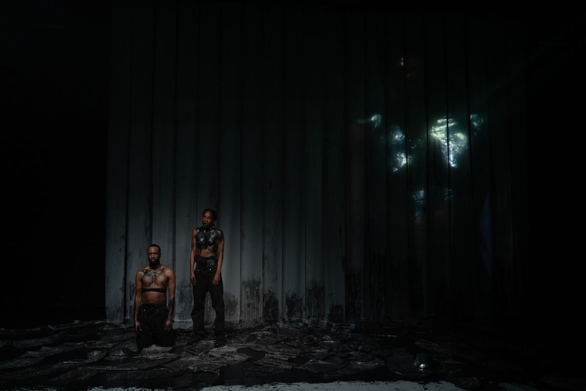 "Whether they are tottering on their stiletto latex boots or slithering naked through black paint, the pair surprise with powerful images after every black-out. Thanks to the daring lighting design, the terrifying soundtrack and the oppressive rap songs spat out live by Menzo and Cortés, Darkmatter is not only a fascinating descent into that heart of darkness that lurks within each of us, but also a poetic critique of representation that celebrates the richness of being black." De Standaard