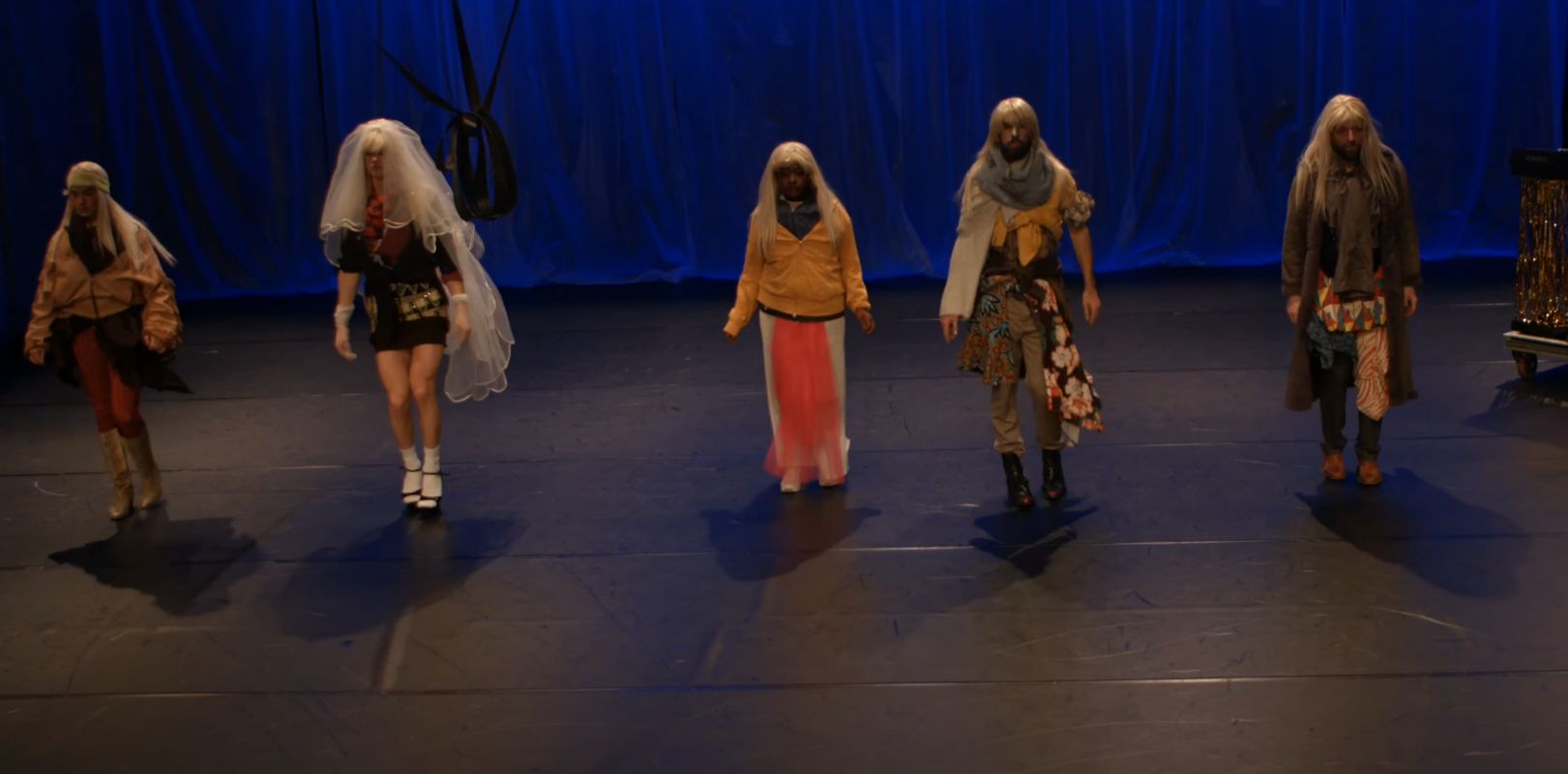 choreography and concept Elisabeth Tambwe dance, performance Luca Bonamore, Annick Choco, Lau Lukkarila, Evandro Pedroni, David Ketterer dramaturgy Katinka Deecke music Ursula Winterauer light design Martin Schwab Video Eduardo Trivinio Cely producer Dig Up Productions