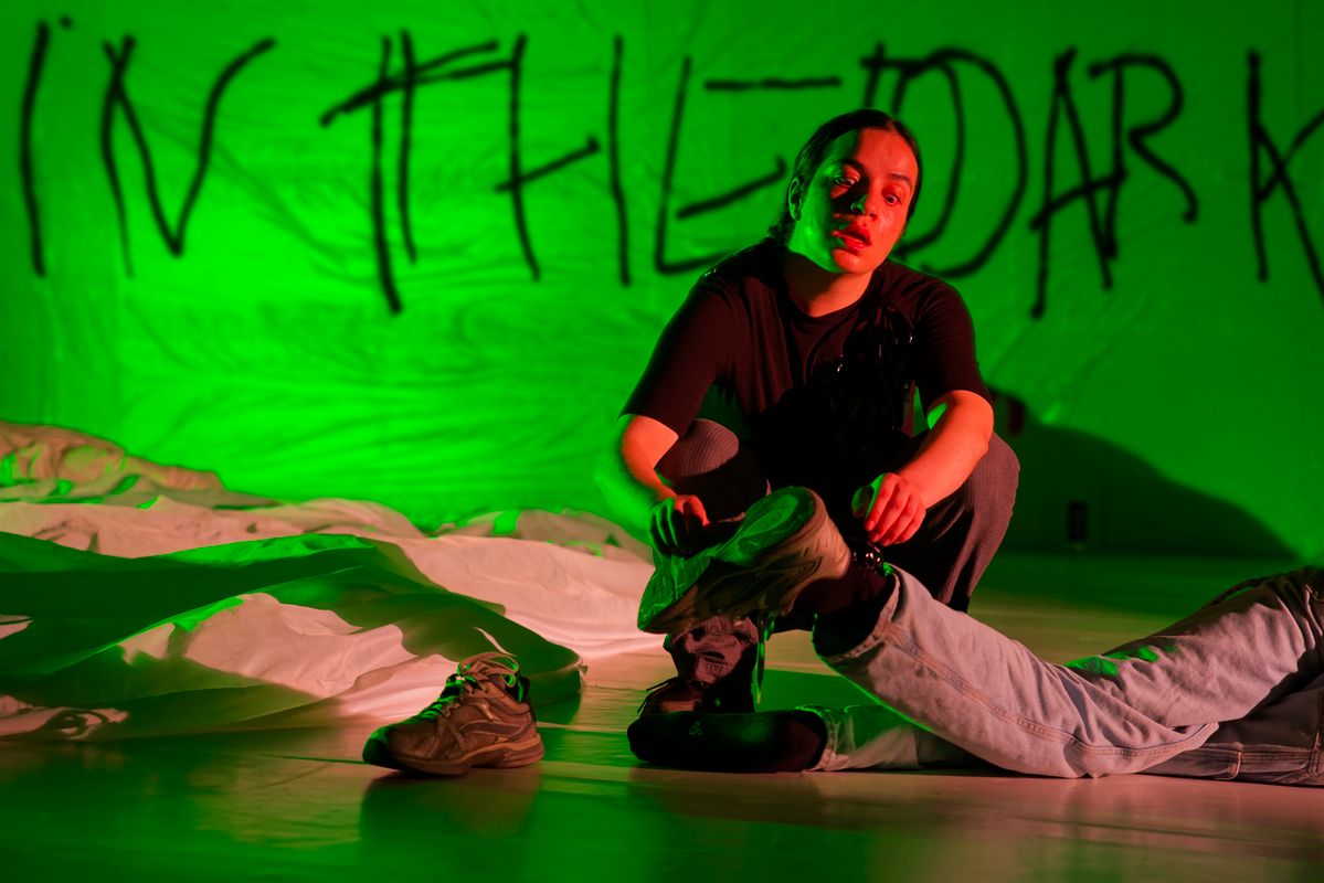"Trying to get cozy in the dark dark void is an urgent work that attempts to shape the all-encompassing nature of the darkness that moves in and around us (...) a necessary performance." Theaterkrant