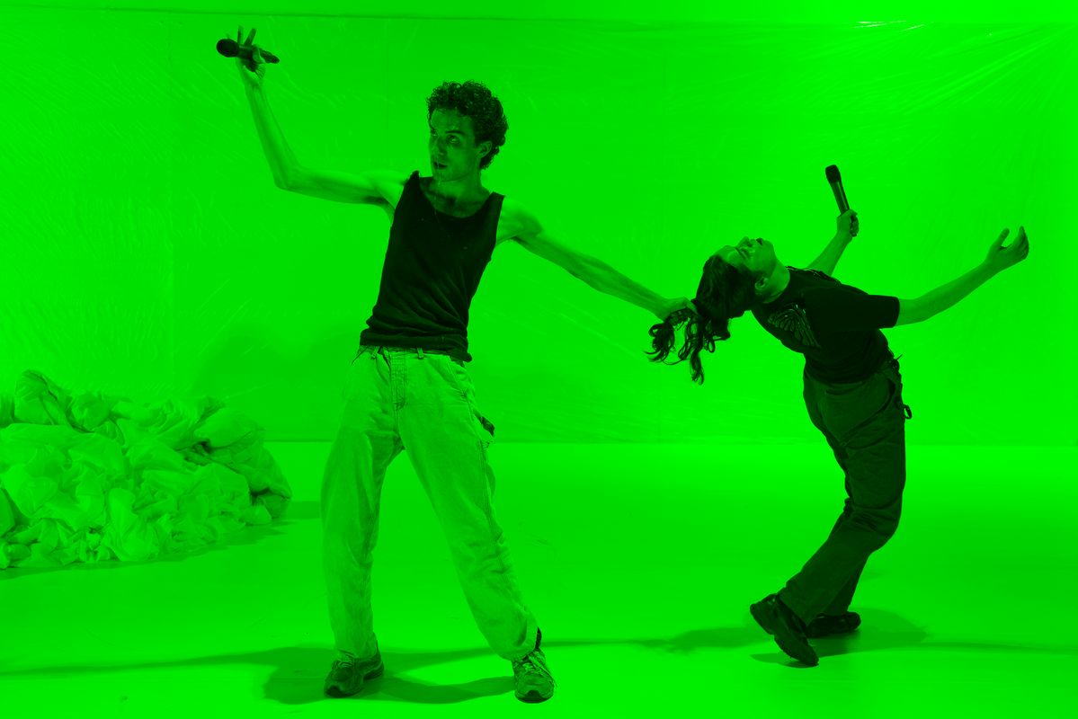 FADAT is a performance collective consisting of Dutch-Iranian siblings Manuel Groothuysen and Diane Mahín. After having finished their theoretical studies in social sciences and humanities, the duo started to collaborate during their studies at the Institute of Performative Arts in Maastricht. They artistically connect through their shared existential and absurdist view on reality, and on the ways in which humans are subjected to the manipulation of (non-)human entities. These ideas can be overwhelming and confronting, but if one manages to zoom out, potentially liberating and painfully funny. Diane and Manuel shape these concepts into audiovisual performative realities informed by human behavior inside both fabricated and inevitable patterns.