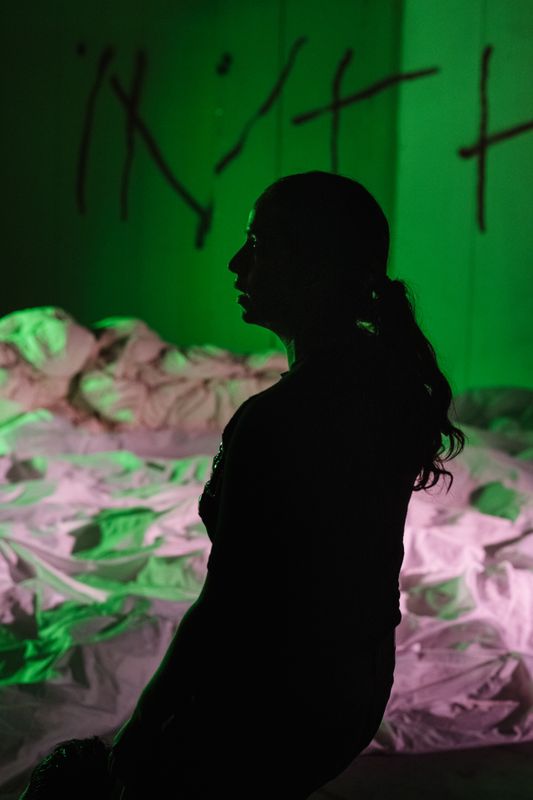 creation, performance, sound design FADAT stage installation, costume design Arthur Guilleminot dramaturgy Peter Missotten coaching Peter Vandemeulebroecke, Esther Snelder outside eye Michiel Vandevelde photography Ies Kaczmarek visual design Heleen Mineur text excerpts by Clarice Lispector, translated by Johnny Lorenz, from A BREATH OF LIFE, copyright ©1987 by the Heirs of Clarice Lispector, translation copyright ©2012 by Johnny Lorenz. Reprinted by permission of New Directions Publishing Corp. Clarice Lispector, UM SOPRO DE VIDA, © Paulo Gurgel Valente, 1973 looped soundsample first scene Wuji residencies Het Huis Utrecht, Platform Nexus co-production ON_OFF_SPACE fueled by deSingel supported by Performing Arts Fund NL, Janivo Stichting, Amarte Fonds, Cultuurfonds