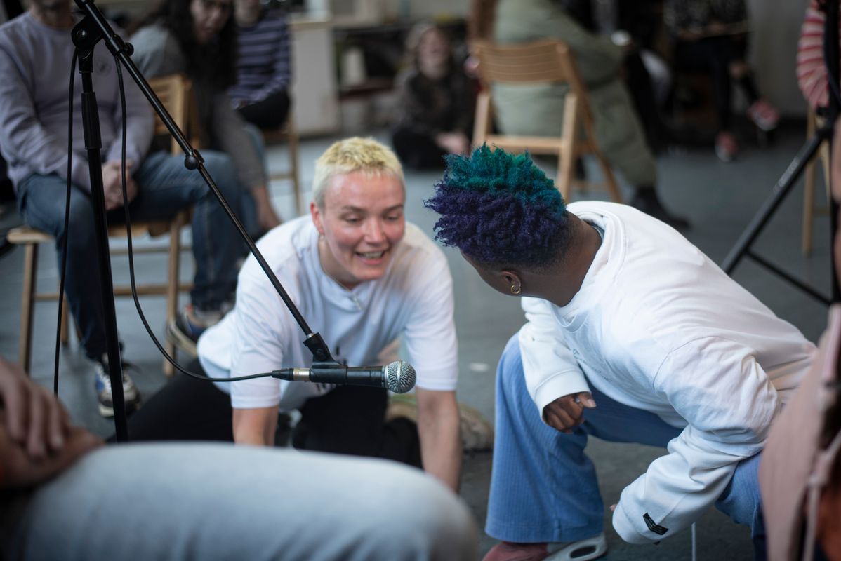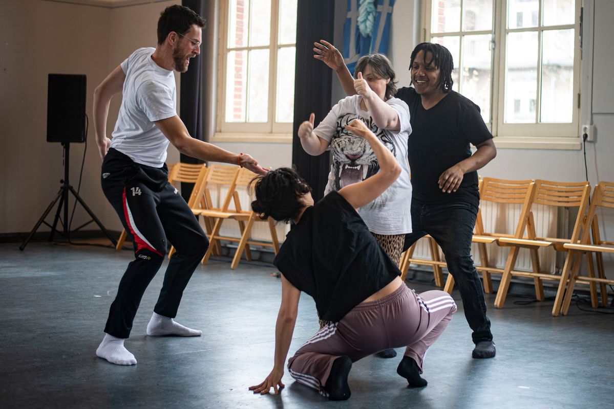 Twee nieuwe makersduo’s gingen aan de slag met spelers van Theater LeBelle, een theaterwerkplaats voor mensen met een verstandelijke beperking en onderdeel van het Cordaan programma Kunst & Zorg. Merel Severs en Leonne de Jong werkten met Sylvie Filla, Yorrin Welters en Givenny Seedorf aan een speelse, muzikale verkenning van wat het betekent om (samen) te spelen op de vloer. Gerbrand Bos en Ariadna Rubio Lleo werkten met Bea Otte en Thiezayro Cordoba aan een beeldende voorstelling over macht, geïnspireerd op onderlinge gesprekken en foto’s van Erwin Olaf.