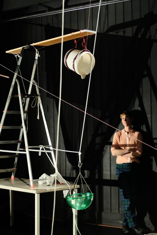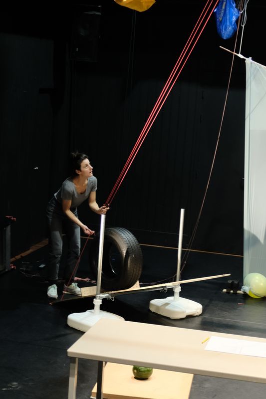 The collaging and this idea of deconstructing and rebuilding the structures around us developed into another piece of work that I premiered last year, like the party has been cancelled. So the collaging itself is no longer in this show, but the gesture of building, and of reusing materials, is really still there in the machine.