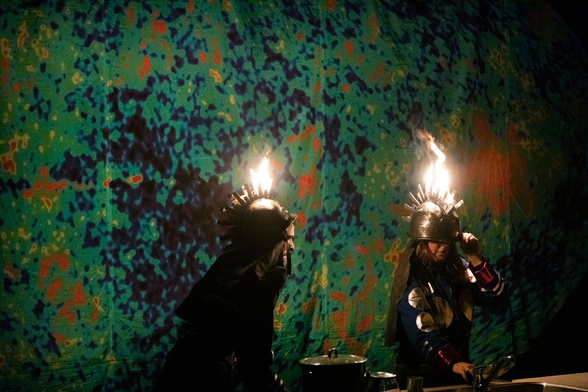 Met low-tech, good-old-fashioned, houtje-touwtje-theatermiddelen toveren we de wereld van het immense niks in de hoofden van het publiek.
