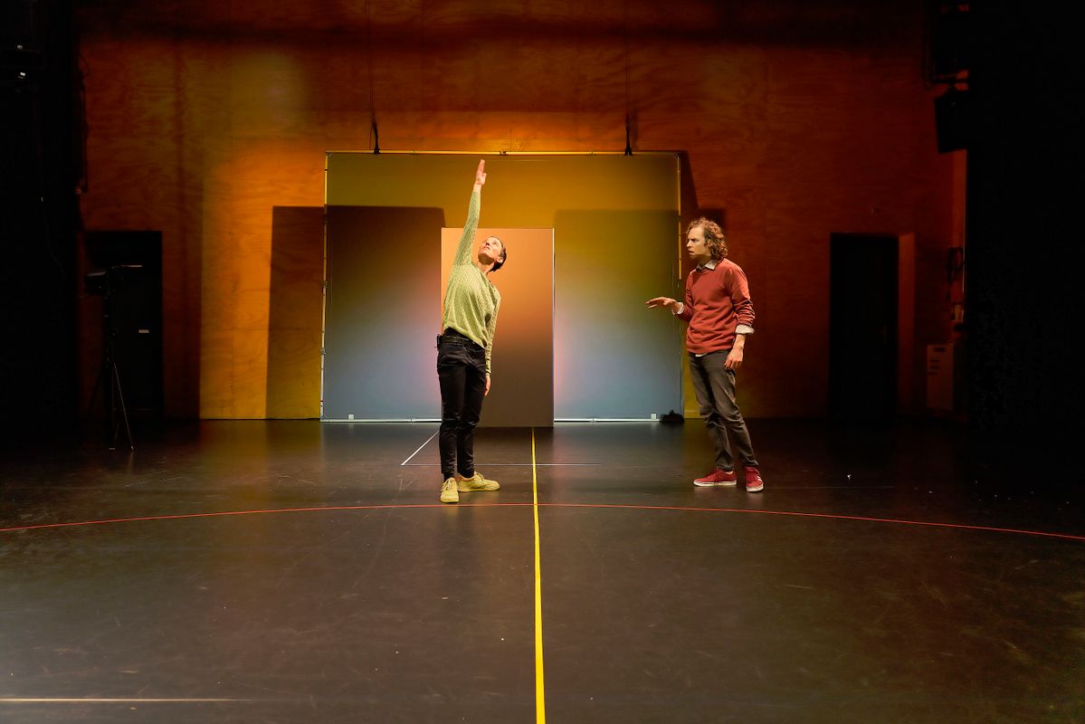 concept, script, choreografie, space design, video-licht installatie Andrea Božić en Julia Willms script in samenwerking met Billy Mullaney performers Billy Mullaney en Julia Willms video en animatie Julia Willms geluid Robert Pravda lichtontwerp Vinny Jones management en productie TILT Marieke van Bueren techniek Pablo Fontdevila en Nikzad Arabshahi productie Michael Scerbo en Elioa Steffan aarde & maan beeld Julia Willms dramaturgie stagaire Tery Žeželj foto’s Thomas Lenden en Andrea Božić geproduceerd door TILT Residency Veem House for Performance mede mogelijk gemaakt door the Fonds Podiumkunsten, Amsterdams Fonds voor de Kunst, Prins Bernhard Cultuurfonds, Tijl Fonds, Kickstart Cultuurfonds, Horizon and DAS Research.