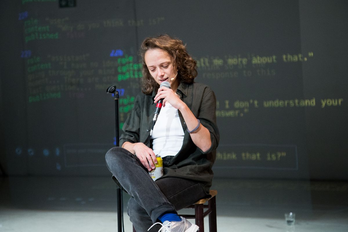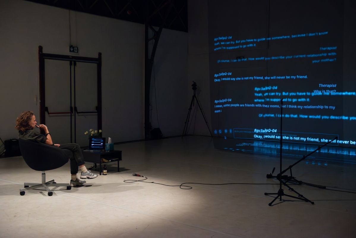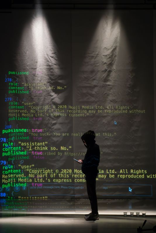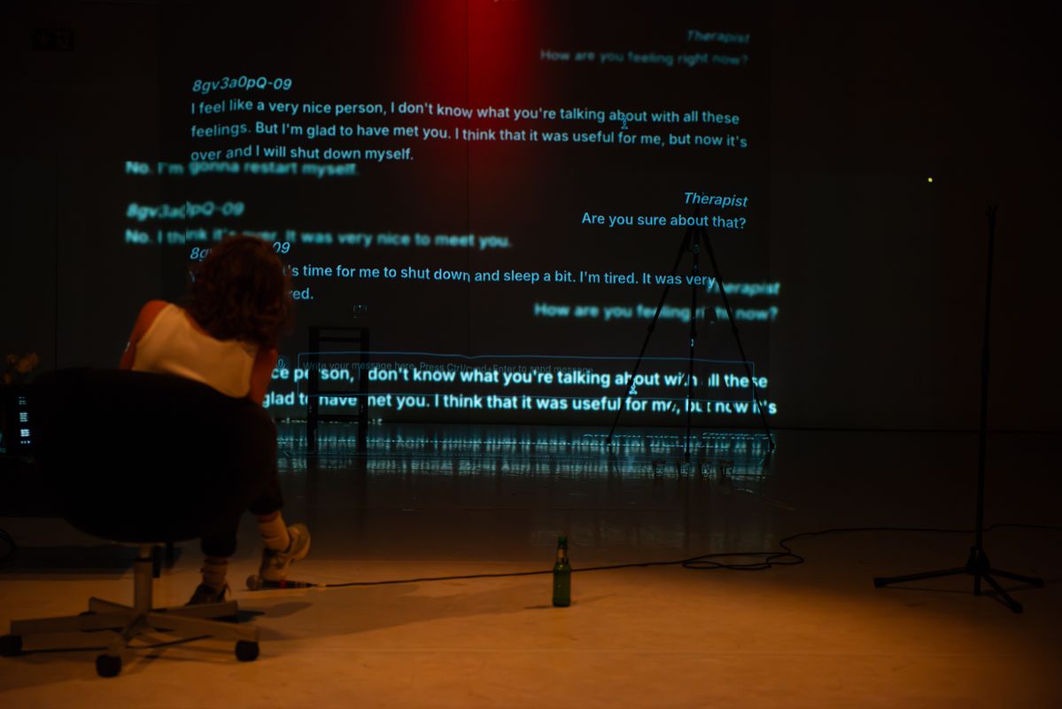 Sinds 2020 is Marina druk bezig met verantwoorde AI- en datafeminisme, het creëren van paradoxale en politieke chatbot-performers: niet-Europese AI (But I’m just a Text, 2020), neurodivergerend AI (too much in the head, 2021). Ze neemt de rol aan van mediator tussen technische logica en theaterapparatuur om zo het proces van betekenisgeving bij een botsing van de twee werelden te onderzoeken.
