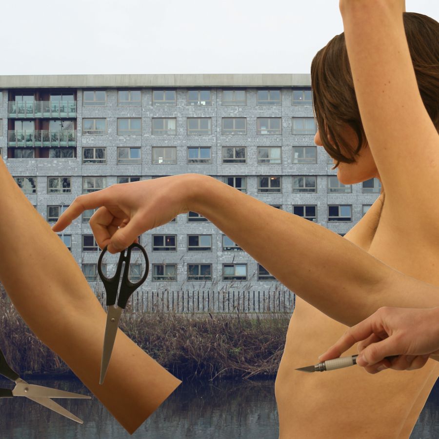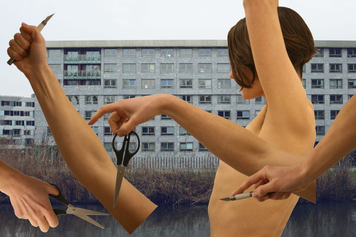 Een collageperformance van versneden lichamen, geënte dieren, halve landschappen, opnieuw samengestelde geschiedenissen, ontlede werelden.