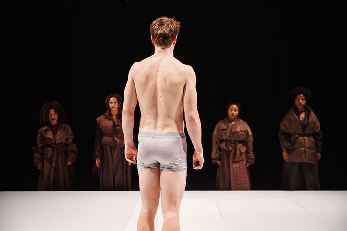 Winter/21/J van choreograaf Ryan Djojokarso is een hypnotiserende solo voor danser Oliver Wagstaff en vijf zwarte zangeressen. ★★★★ de Volkskrant
