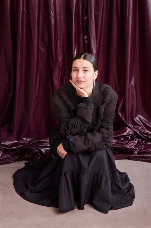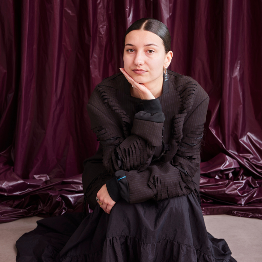Esra Çöpür (1998, Amsterdam) is een modeontwerper en kunstenaar die zich fluïde beweegt tussen disciplines als installatiekunst, performance, theater, muziek en film. Afgestudeerd aan de HKU (Fashion Design) in 2019, verkent zij de grenzen van mode door bestaande kledingstukken te herdefiniëren en onverwachte contrasten te creëren. Haar werk kenmerkt zich door het gebruik van deadstock- en tweedehandsmaterialen, waardoor vormen en texturen op inventieve wijze samenkomen.