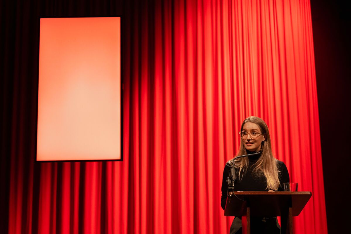 Caro Derkx (Arnhem, 1995) maakte in 2019 haar afstudeersolo Me, Myself and Sir Roger Scruton, die ze, onder begeleiding van Thomas Dudkiewicz, schreef na een periode in Oxford te hebben gewoond. Me, Myself and Sir Roger Scruton is een politiek-psychologische ideeënthriller over de conservatieve filosoof Sir Roger Scruton, waarin de aantrekkingskracht van het neoliberaal gedachtengoed voor een jongere generatie onder de loep wordt genomen. Uiteindelijk werd het vooral ook een monoloog over het spanningsveld tussen ‘het ik’ en 'de ander’. De voorstelling won zowel de Henriëtte Hustinxprijs 2019 als Het Debuut 2019.