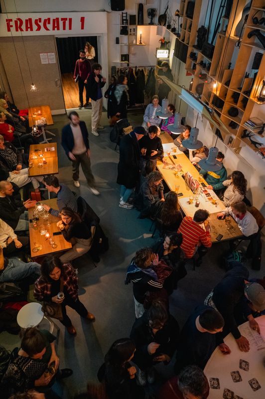 Een avond in Frascati is avontuurlijk, onverwacht en inspirerend. De sfeer in huis is informeel zodat ons publiek zich thuis voelt en ontspannen kan genieten. Dat publiek is jong, eigenzinnig en beschikt over een nieuwsgierige geest. Er is ruimte voor ontmoeting en gesprek. Dat kan in de zaal zijn, maar ook in ons eigen café.